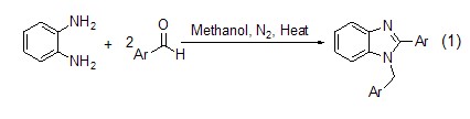 鄰二胺和兩當量的芳香醛在甲醇中反應時,生成相應的五元氮雜環的并咪唑衍生物 (式1)[3]