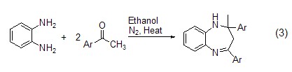 式1中的原料芳香醛換成乙酰基芳香族化合物時,得到的是并七元環的產物即并氮雜化合物 (式3)。